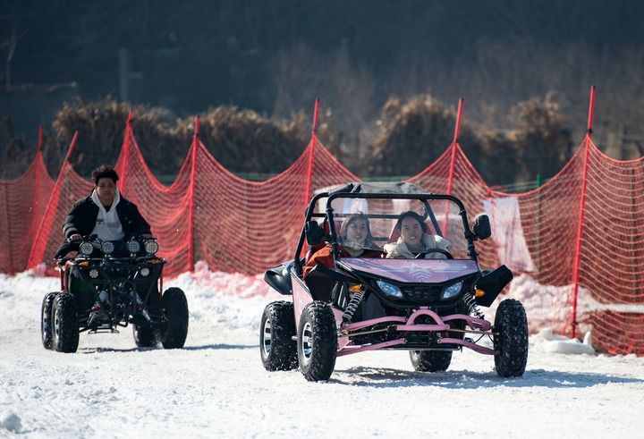 2025年1月19日,在河北省邯鄲市復興區東高河村滑雪場,游客在體驗雪地越野車項目。新華社記者 王曉 攝