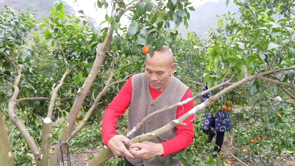 在大山深處,同樣火熱的生產在田陽區五村鎮洞琴村上演。農戶們正在加緊嫁接新芽,將沃柑換種為金秋砂糖橘。