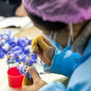 2月8日,湘潭綜合保稅區的湖南桑尼森迪玩具制造有限公司,工人在制作“敖丙”手辦。新華社記者 陳思汗 攝