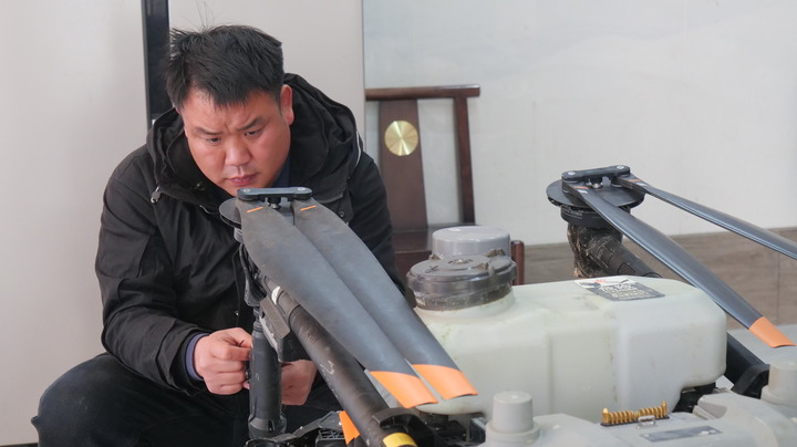 無人機“4S店”店主張子強和工作人員一個多小時就修好了無人機。張子強說,如今農民不僅要靠經驗種田,還要懂技術、會經營。他每年都會組織技術人員為有意愿的農民進行無人機技術培訓、講解保養知識,已累計培訓上千人次。