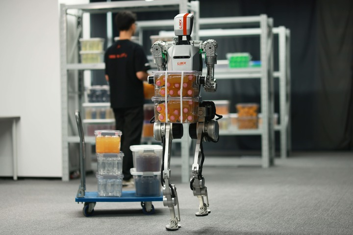 在深圳逐際動力科技有限公司,人形機器人CL-1進行大負載搬運任務。(資料照片)