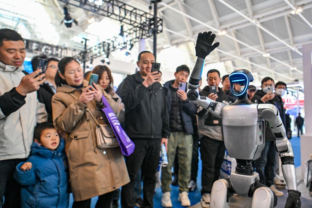 3月6日,在國家會展中心(天津),宇樹科技帶來的一款人形機器人現場表演。新華社記者 孫凡越 攝