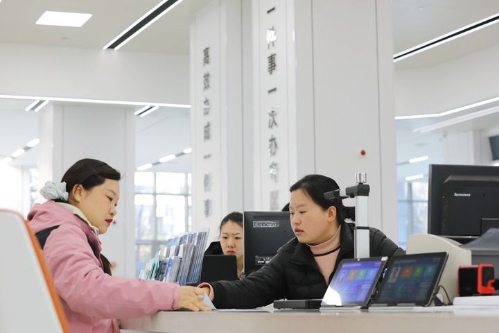 宿遷市政務服務中心,工作人員在為市民辦理證書登記業務(3月18日攝)。