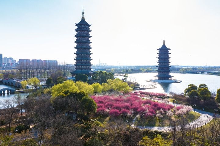宿遷雙塔公園(3月18日攝)。組圖均由新華每日電訊記者毛俊 攝