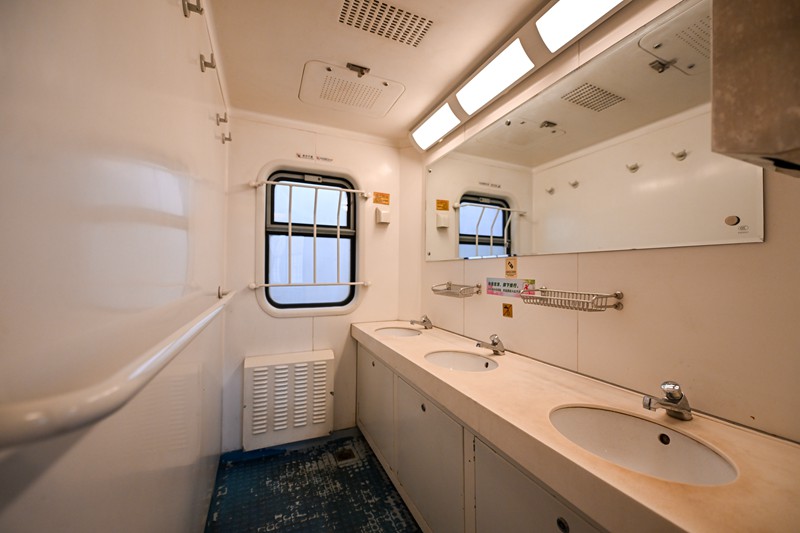 記者看到,經適老化改造的列車采用4人一包房設計,沒有中鋪,只有上下鋪,鋪位在原有基礎上加寬了8厘米;洗漱間內設有3個洗手池,衛生間配備坐便器、防滑地面、設有安全扶手……