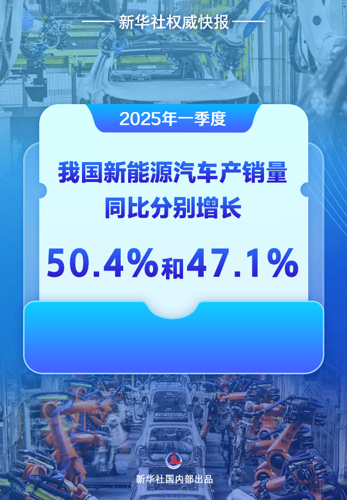 中國汽車工業協會11日發布數據顯示,2025年一季度,我國汽車產銷累計完成756.1萬輛和747萬輛,同比分別增長14.5%和11.2%,其中新能源汽車產銷分別增長50.4%和47.1%。