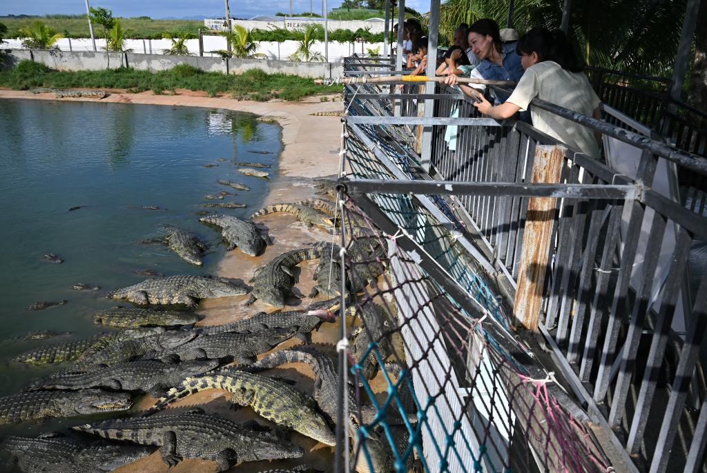 游客在鱷珍鱷魚園游玩。新華社記者 郭程攝