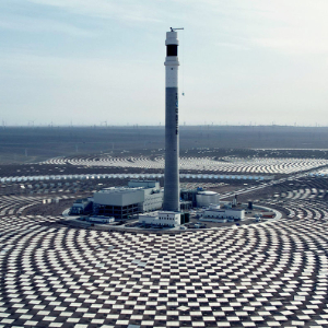 這是全球首座“雙塔一機”光熱電站,也是國家首批“沙戈荒”風電光伏大基地項目——三峽恒基能脈瓜州70萬千瓦“光熱儲能+”項目的重要組成部分,電站發電機組不久前順利發電,為項目全面投運奠定了堅實基礎。