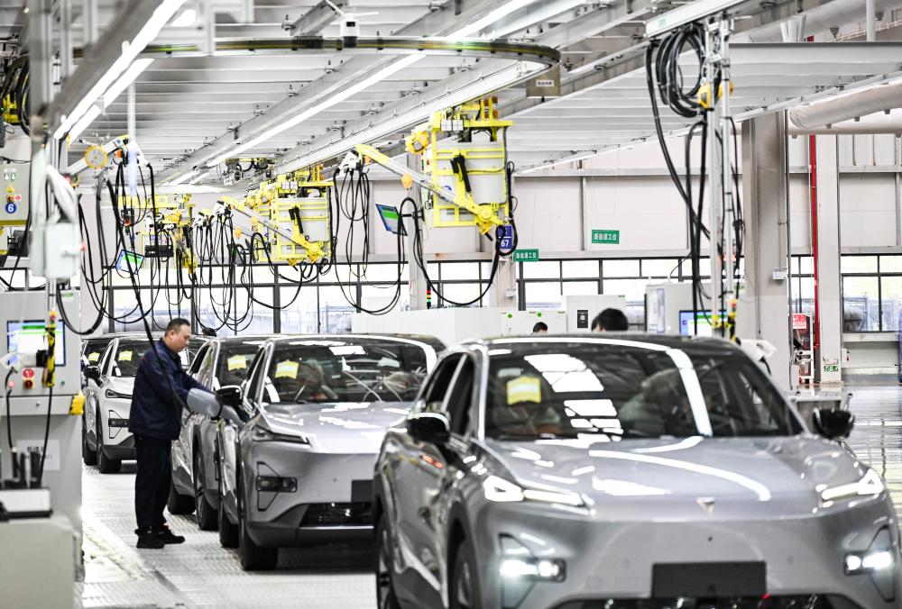 2025年3月6日,工人在位于重慶市渝北區的長安汽車數智工廠總裝車間作業。新華社記者 王全超 攝