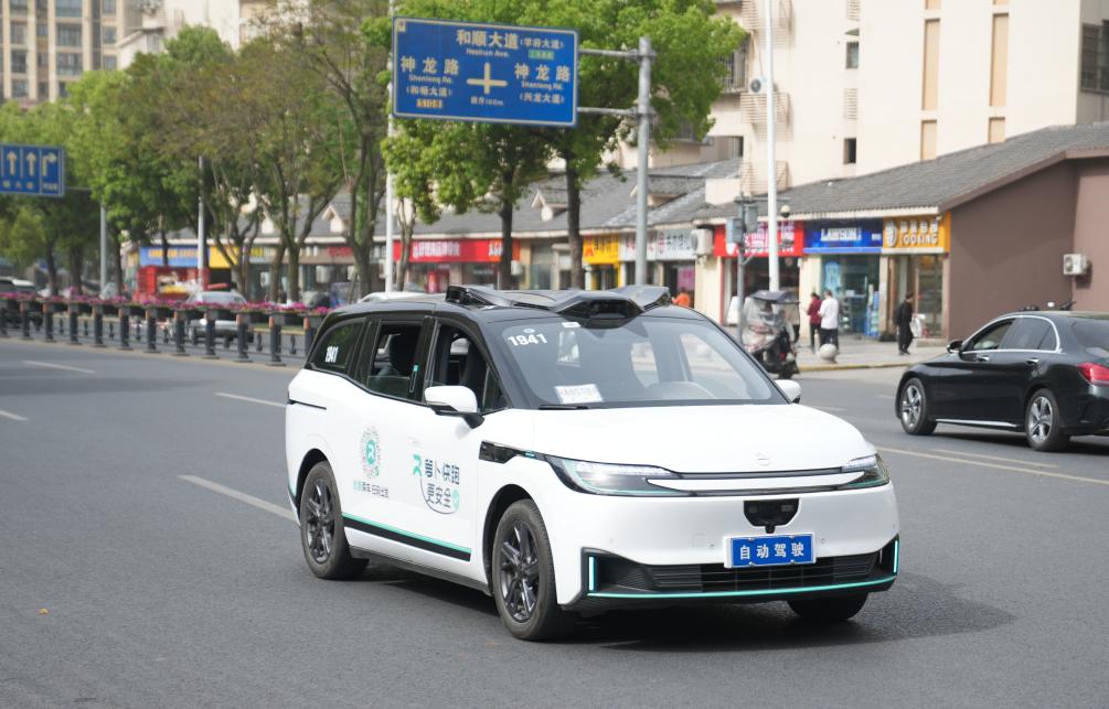 2025年4月13日,自動駕駛網約車行駛在重慶永川城區。新華社發(陳安鑫攝)
