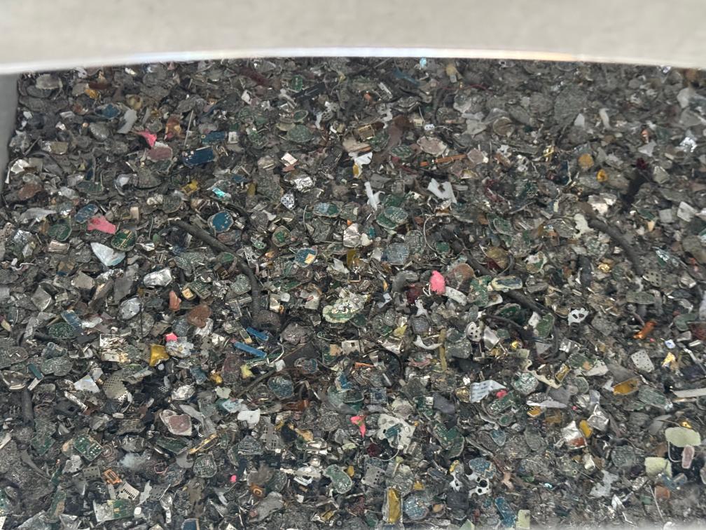 4月11日,廣東汕頭市中國資環集團手機安全回收貴嶼處置基地內,經機械破碎后的手機碎片。新華社記者仇清漪 攝