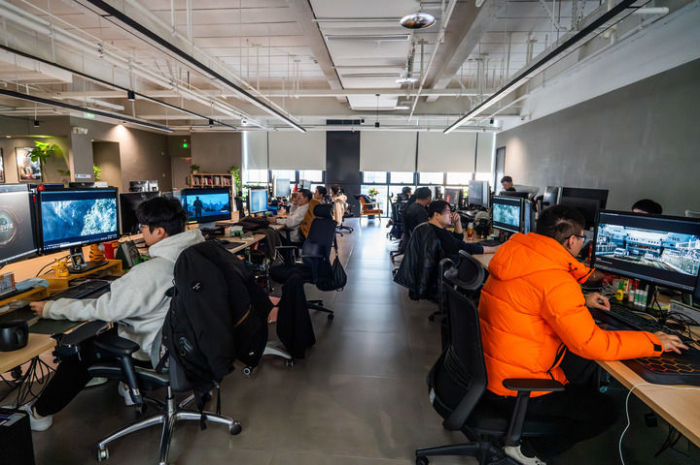 《哪吒之魔童鬧?!罚ā赌倪?》)視覺特效制作公司墨境天合成都數字圖像科技有限公司的工作區(2025年2月10日攝)。新華社記者 薛晨 攝