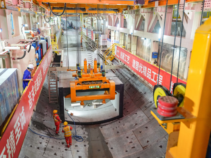 2025年4月18日,工人在位于四川省成都市的成渝中線高鐵蜀安隧道進行施工作業。新華社記者 王曦 攝