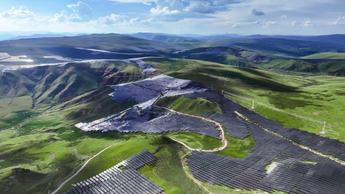 這是2024年10月9日在四川甘孜藏族自治州拍攝的180萬千瓦昂多光伏項目建設現場。新華社發(姚航 攝)