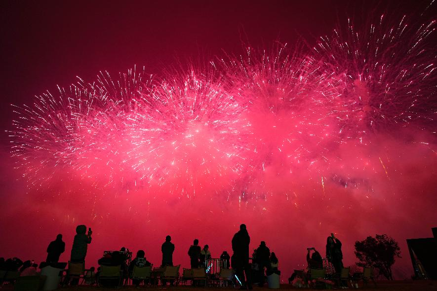 2025年2月15日,觀眾在湖南省瀏陽市天空劇院觀賞“春焰啟幕 星耀瀏陽”周末焰火秀。新華社記者 薛宇舸 攝