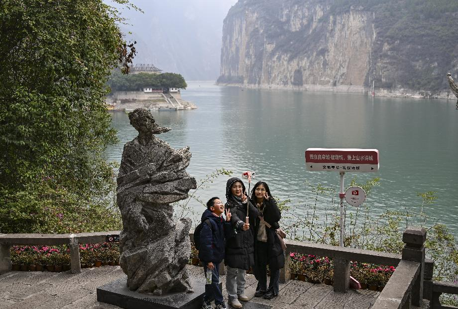 游客在重慶奉節白帝城游覽拍照(2025年2月13日攝)。新華社記者 王全超 攝
