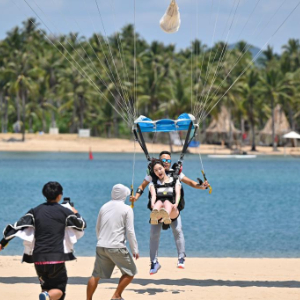 剛剛過去的“五一”假期,三亞塔赫跳傘基地日均接待量較平日增長約70%,2024年基地接待跳傘客人超過1萬人次,今年一季度已經達到6000人次。三亞塔赫極限運動俱樂部有限公司總經理張恩銘說:“低空旅游以高空視角賦予傳統景區全新魅力,尤其受年輕群體追捧?!?/p>