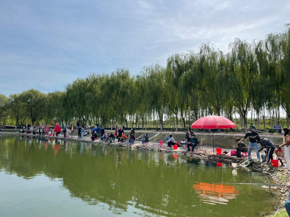 市民游客在西閆莊村休閑垂釣。新華社發