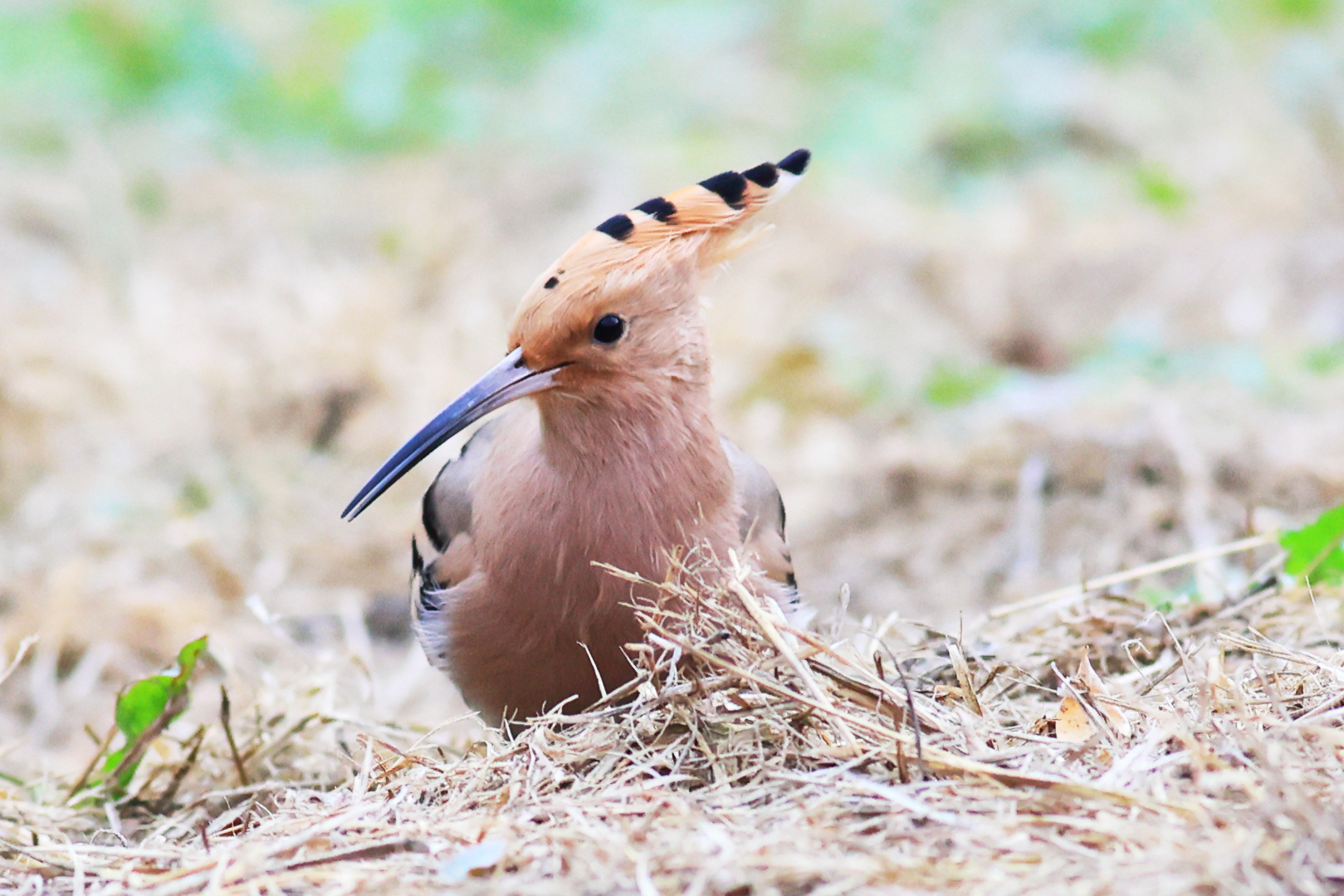 在公園草叢覓食的戴勝鳥。新華網發(郭連友攝)