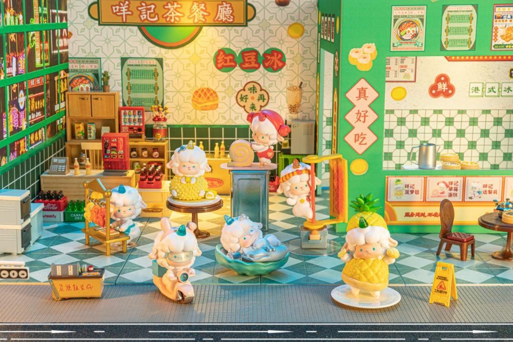 羊角呈蝦餃褶皺造型,托盤設計成蒸籠紋理,底座能播放粵語早茶叫賣聲……位于廣州北京路步行街的一家潮玩店內,原創IP“卷卷羊”將羊仔形象與當地美食元素融合,一經上市便廣受歡迎。