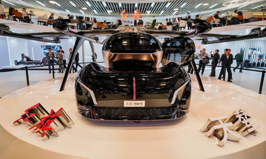 2025年4月23日,紅旗品牌在上海國際車展展示的紅旗飛行汽車。(中國一汽供圖)