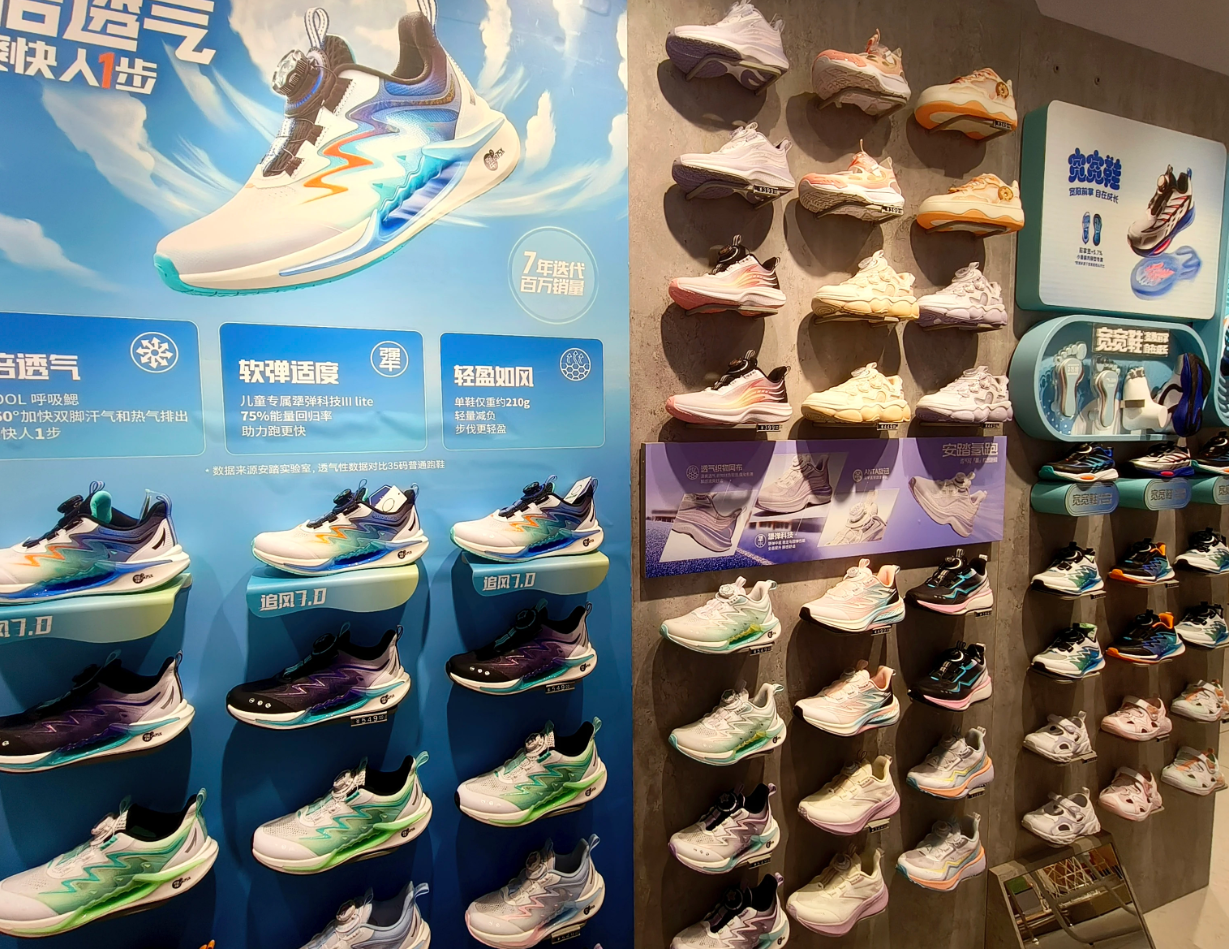 6月22日,北京西單某青少年國產跑鞋品牌產品展示區。新華網 紀校玲 攝