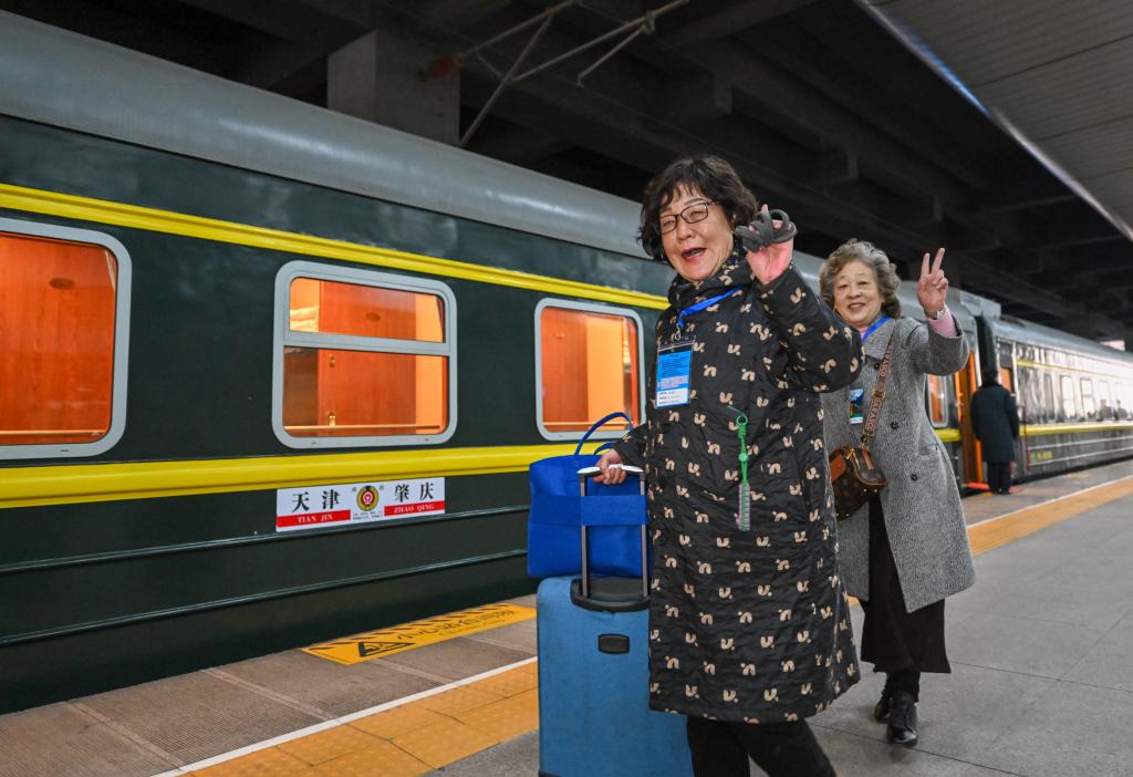 在政策支持下,一列列滿載著銀發游客的列車穿梭于祖國大江南北。