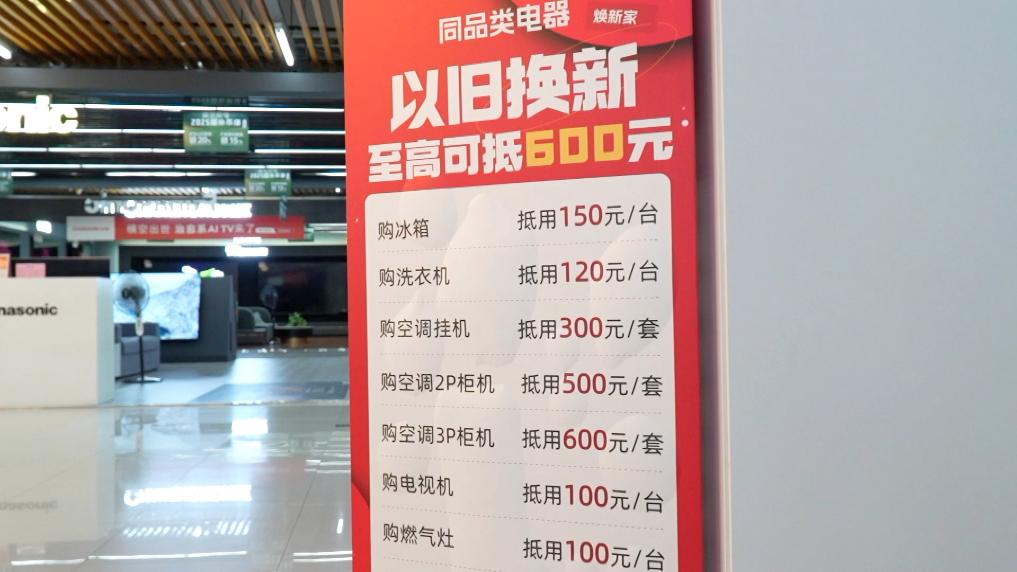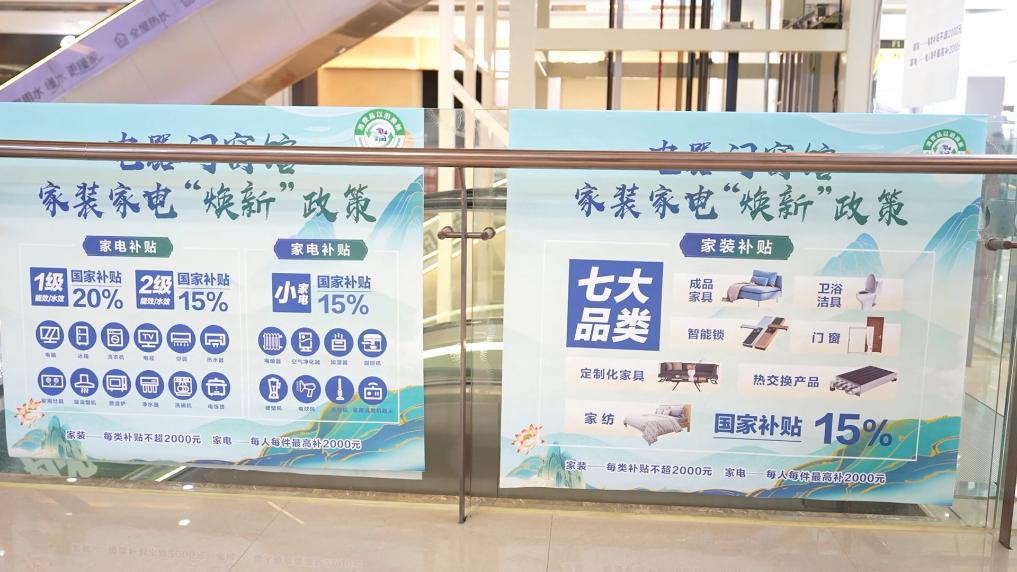 在位于河北保定高新區的紅星美凱龍商場,以舊換新宣傳牌格外醒目,優惠細則、補貼額度一目了然,家居家電賣場掀起消費熱潮。