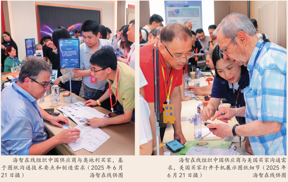 用這種方式,中小制造企業的生產潛力得以大大釋放。海智在線平臺上,一家年產值300萬元的小廠,為全球頂尖縫紉機企業制造23款高難度零部件,并將交期縮短30%;一家年產值500萬元的工廠,為法國低空經濟龍頭完成高難度齒輪生產,成本降低67%;生產玩具汽車輪子的工廠,為美國企業生產工業相機模式轉盤;做冰箱冷藏抽屜的供應商,為加拿大廠商做醫用托盤……一個標簽,讓供應鏈破圈成為尋常。