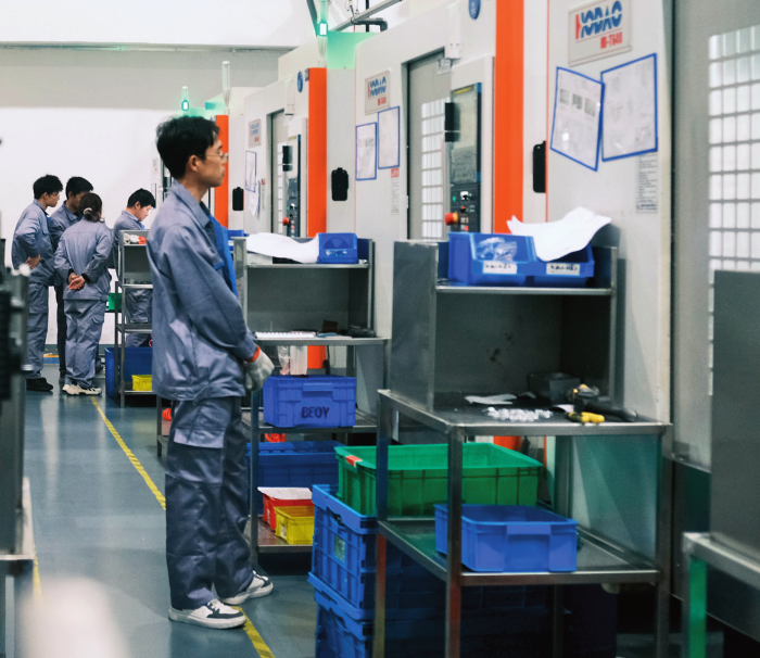 在昆山機械加工工廠,工人正在車間操機(2025年4月16日攝)。海智在線供圖
