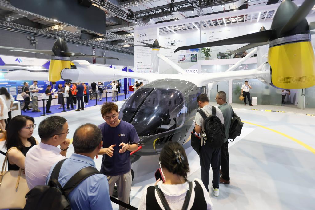 7月23日,人們在博覽會沃飛長空展區了解產品情況。新華社記者王翔 攝