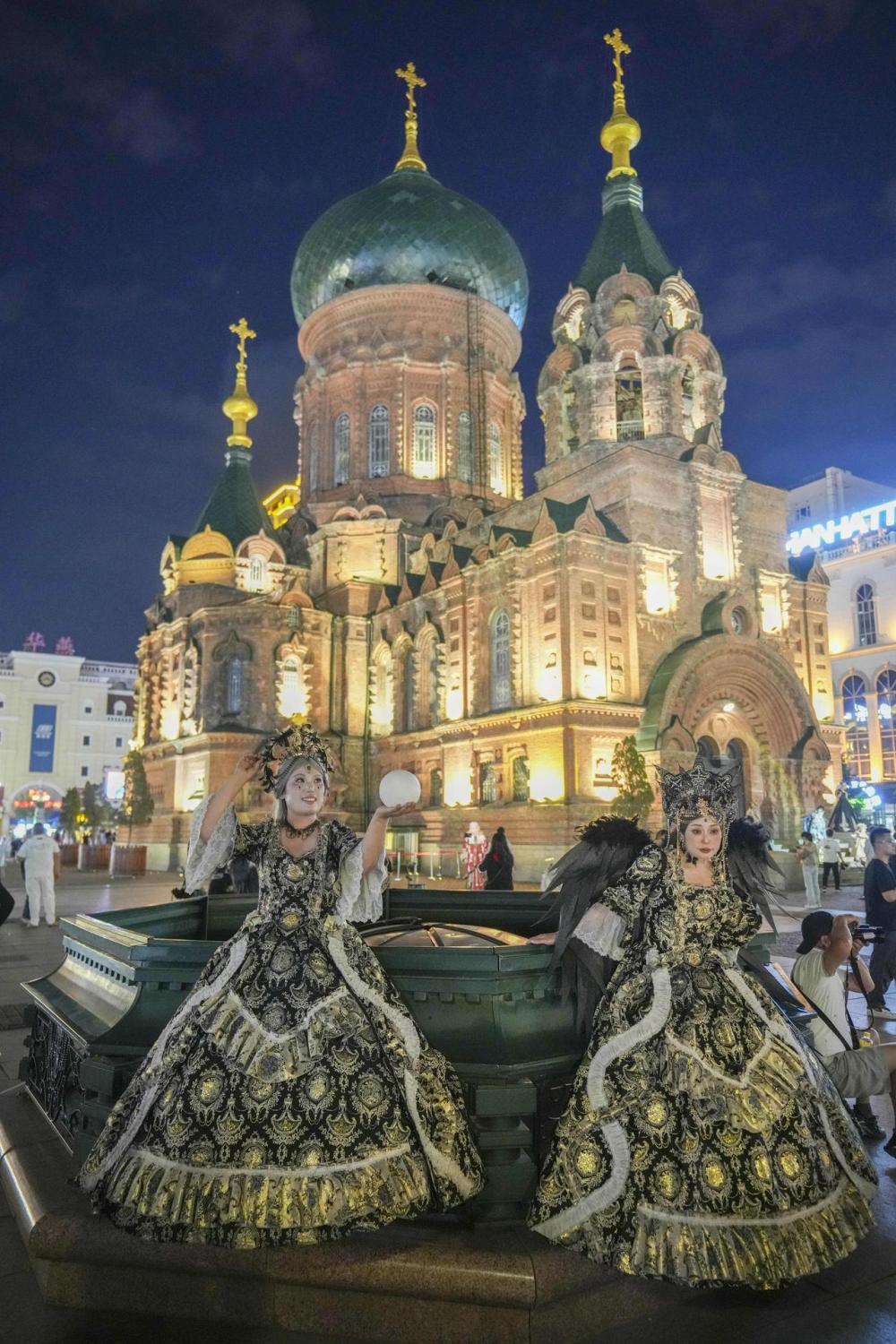游客在哈爾濱建筑藝術廣場盛裝拍照(2025年6月8日攝)。新華社記者 王建威 攝