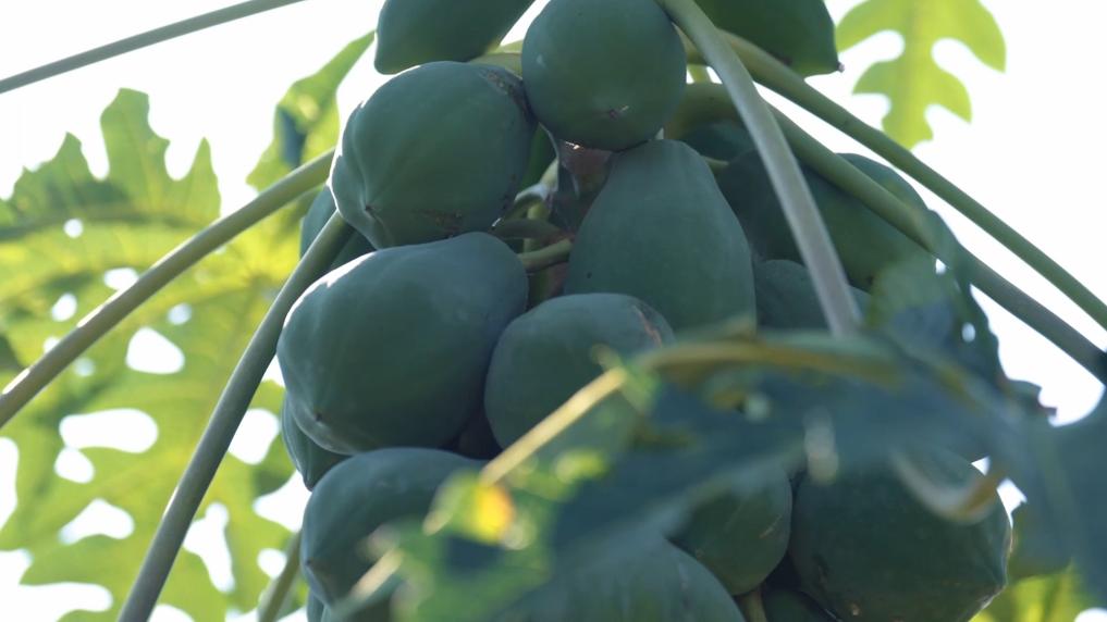 在育才生態區萬保農牧集團有限公司榴蓮種植基地里,500畝掛果的榴蓮樹長勢喜人。今年基地又新增了600畝小苗,“樹上熟”精品果市場價格超60元/斤,電商平臺一上線即售罄,市場供不應求。