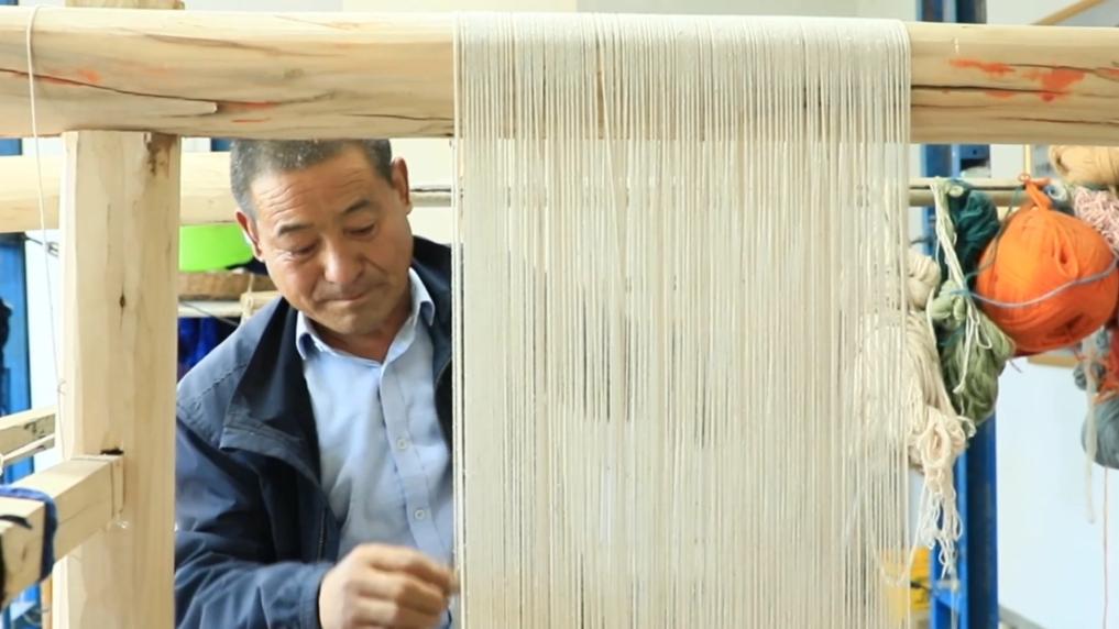 家住青海省西寧市湟中區上新莊鎮加牙村的楊永良從8歲時就跟著父輩學習藏毯編織技藝,是家族第七代織毯傳人。