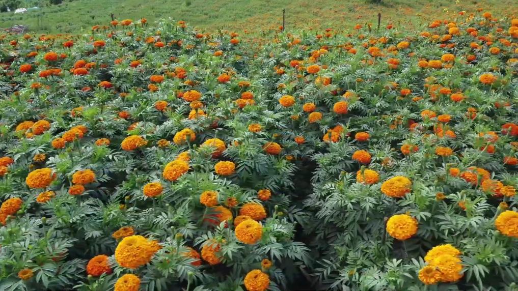據統計,今年雙柏縣共種植萬壽菊12000余畝,預計鮮花總產量3.8噸,預估產值約4260萬元。