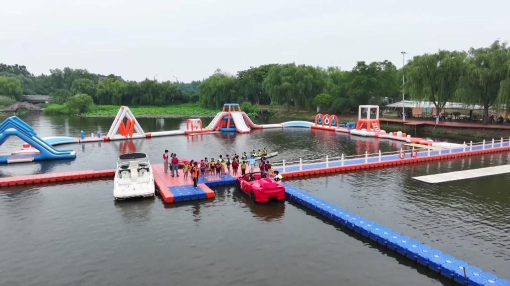 蟬鳴盛夏,豐富多彩的水上運動頗受青睞。在浙江長興縣,皮劃艇、水上魔毯、水上沖關等各項水上運動競技挑戰項目吸引了眾多游客。