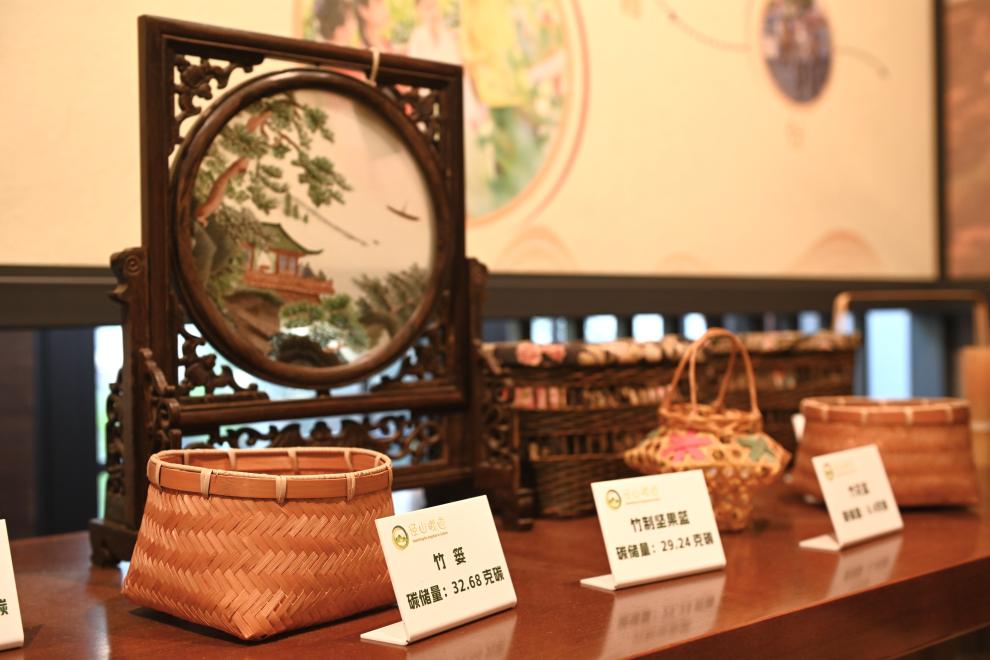 這是8月5日在浙江省杭州市余杭區徑山村拍攝的“以竹代塑”文創產品。新華社記者 毛竹 攝
