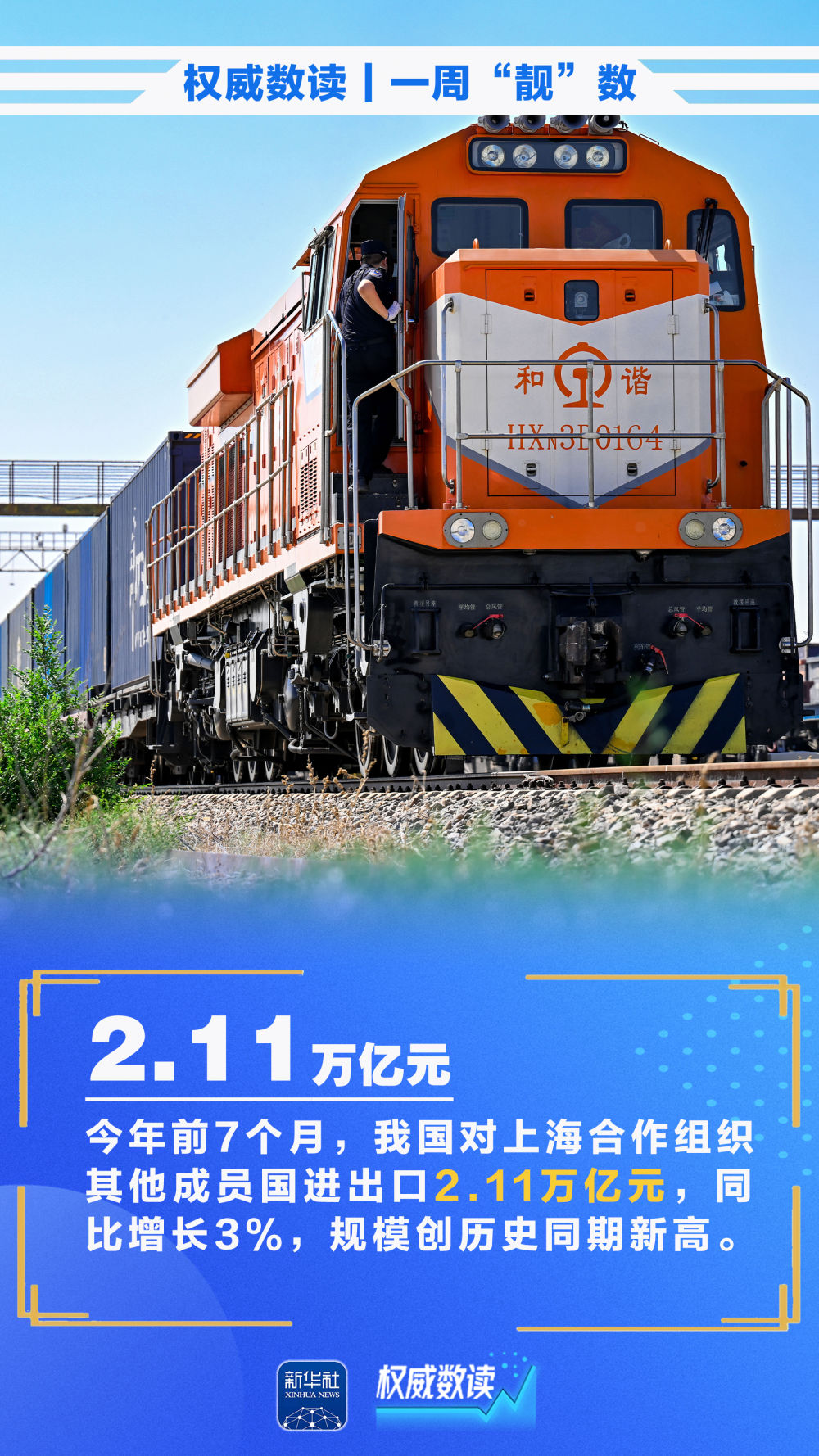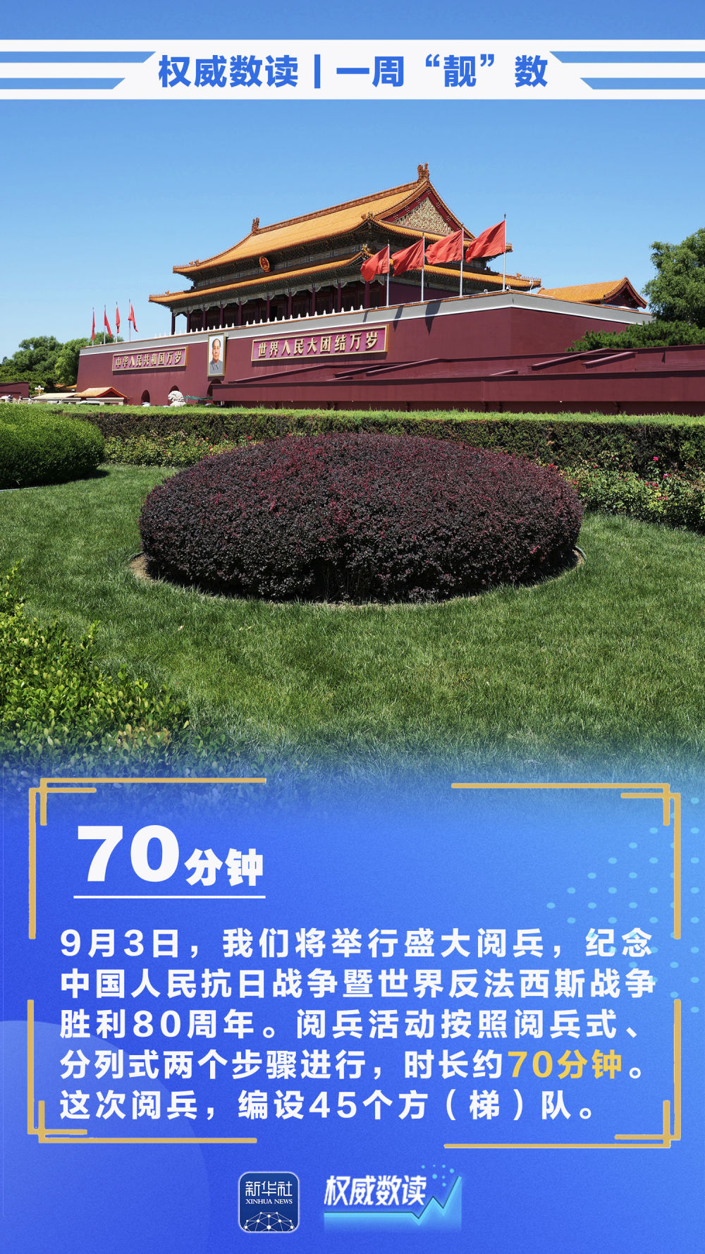 即將到來的九三閱兵活動按照閱兵式、分列式兩個步驟進行,時長約70分鐘;我國外貿保持穩中有進態勢,累計進出口增速逐月回升,前7個月實現3.5%的增長;今年前7個月,我國對上海合作組織其他成員國進出口2.11萬億元,規模創歷史同期新高……本周這些數據,最值得關注!