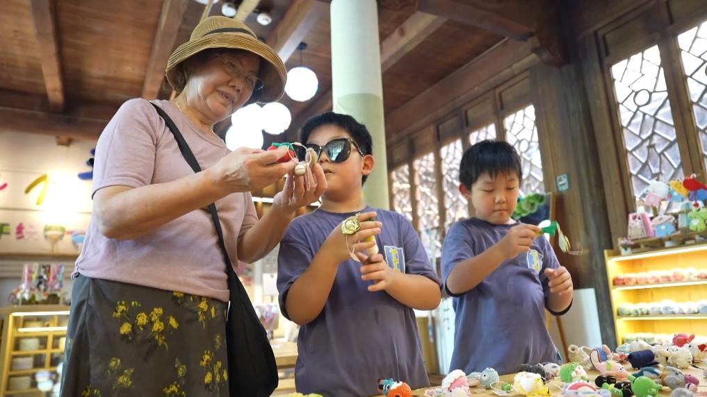 浙江嘉興桐鄉市的濮院時尚古鎮是全國最大的羊毛衫集散中心。在濮院的一家毛線工坊內,來自上海的游客正在欣賞店內精美的毛線工藝品。