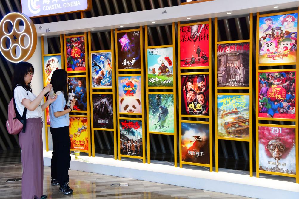 8月17日,觀眾在江蘇省無錫市一家影城的電影海報前駐足。新華社發(還月亮攝)