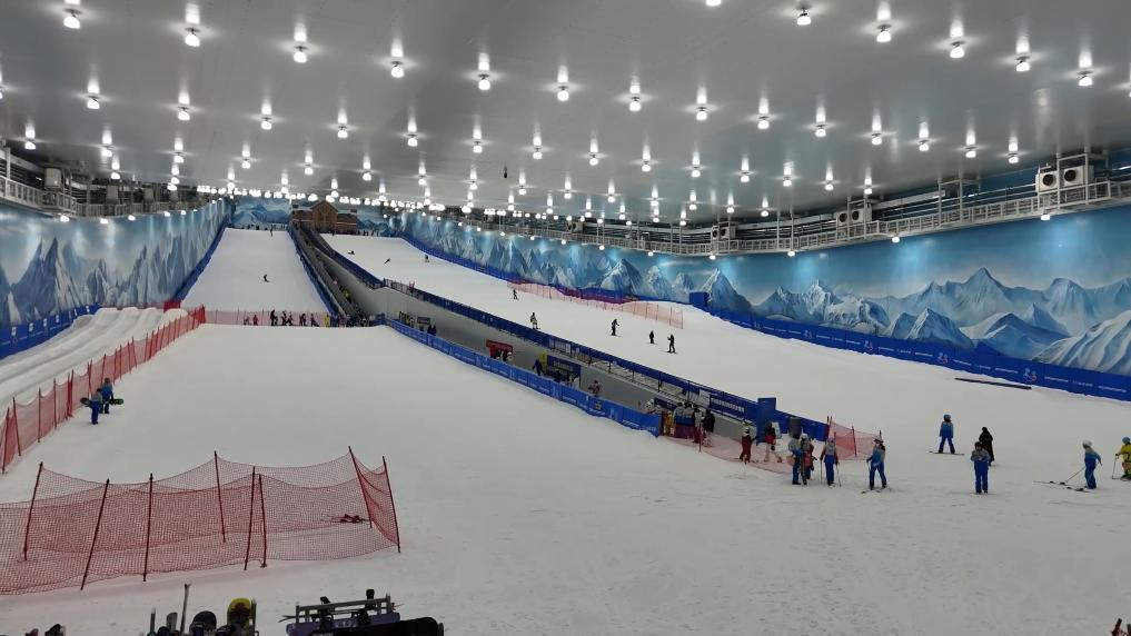 位于西咸新區秦漢新城的這個滑雪館占地91畝,穹頂挑高50米,四條雪道如銀龍蜿蜒:初級道寬31米,供新手“蹣跚學步”;中級道最大坡度15度,可體驗俯沖快感;兩條高級道經國際雪聯認證,落差達34.7米,適合滑雪高手翻騰回轉。