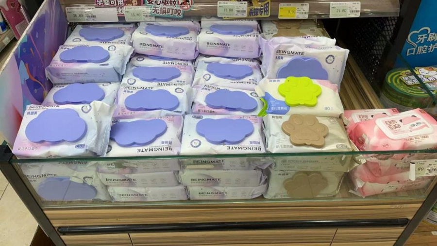 8月26日,杭州蕭山區某生活超市里貝因美紙巾產品售賣現場