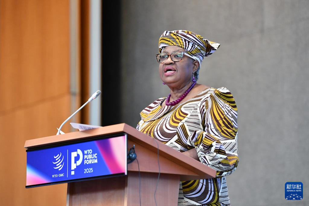 9月17日,在瑞士日內瓦世貿組織總部,世貿組織總干事伊維拉在《2025世界貿易報告》發布會上講話。新華社記者 連漪 攝