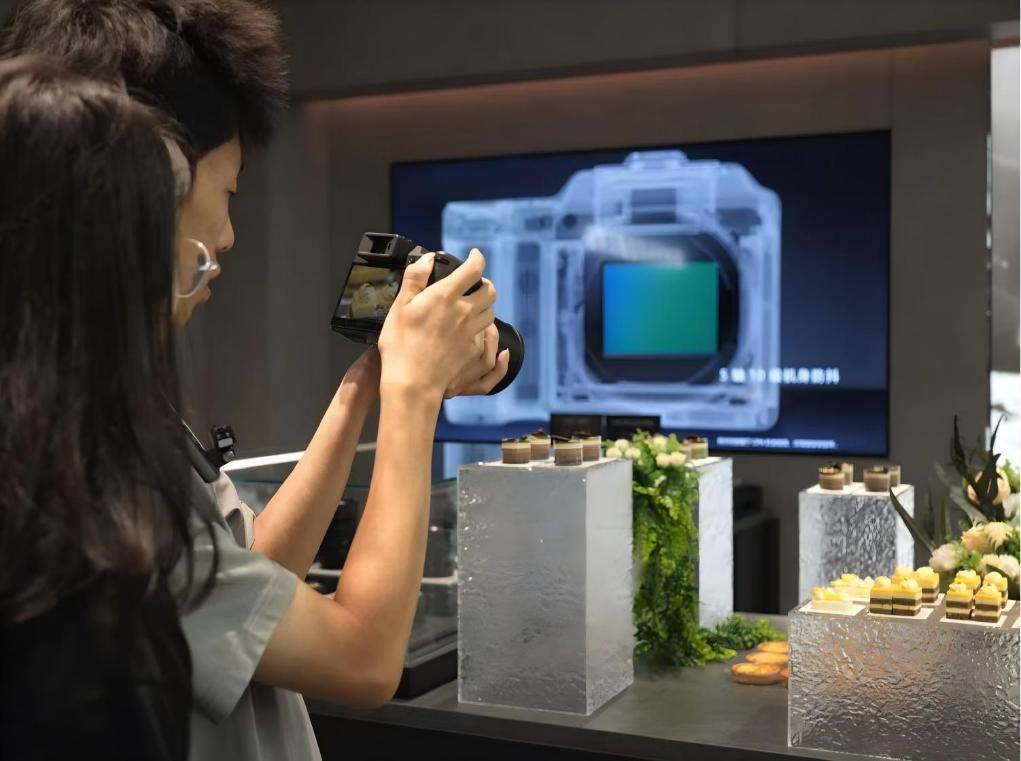 在天津萬象城大疆|哈蘇融合店,顧客在試用哈蘇相機拍攝照片(2025年9月13日攝)。新華社發