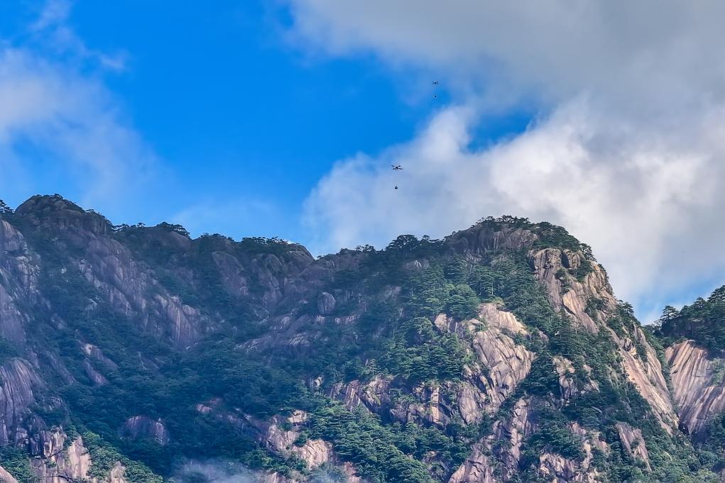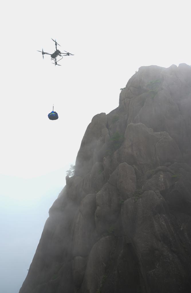 8月22日,在安徽黃山風景區,無人機在運輸物資(無人機照片)。新華社發(樊成柱 攝)