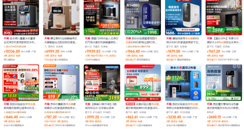 記者在網絡平臺檢索凈水器相關產品時發現,價格從數百元的基礎機型到上萬元的高端型號均有覆蓋。部分熱門店鋪的個別單品月銷量甚至突破2萬件,直觀印證該品類在消費市場的高關注度與旺盛需求。