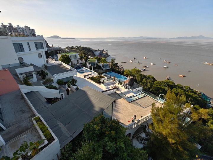 2024年11月29日,游客在寧德市霞浦縣三沙鎮東壁村一家民宿觀景平臺游玩(無人機照片)。新華社記者 姜克紅 攝