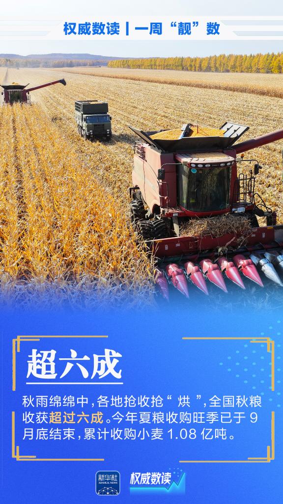 全國秋糧收獲超過六成;新能源汽車產銷量雙雙突破千萬輛;我國制造業增加值每年均超過30萬億元……本周這組數據,最值得關注!