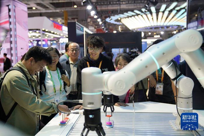 11月6日,參觀者在國家會展中心(上海)技術裝備展區西門子展臺與AI進行游戲互動。 新華社記者 樊雨晴 攝