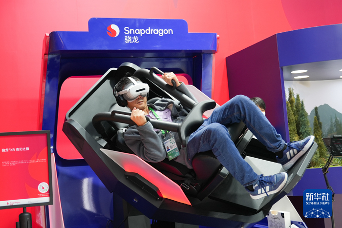11月6日,參觀者在第八屆進博會技術裝備展區高通展臺體驗XR設備。 新華社記者 張子彧 攝